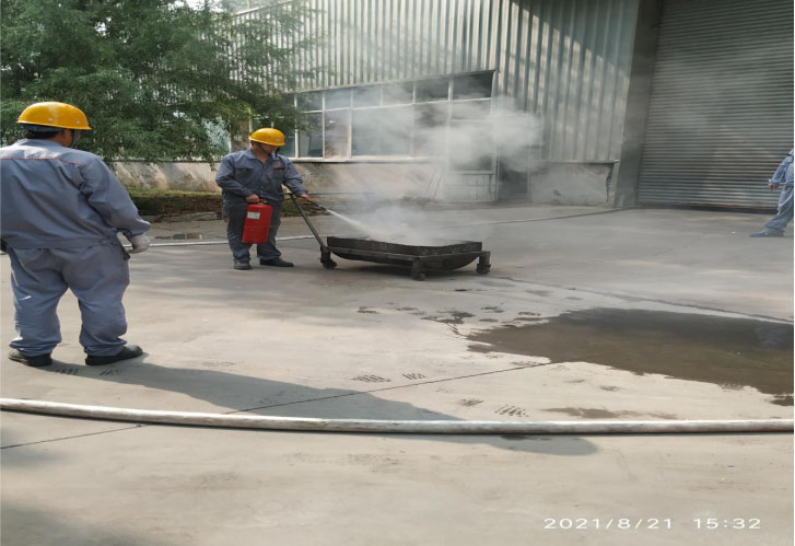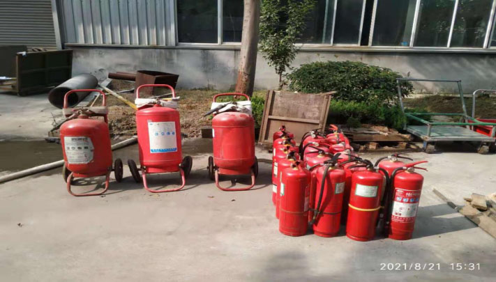 在完成灭火器使用演练后,由企管部、生产部、仓储部对残留的物品做好清理,恢复现场。